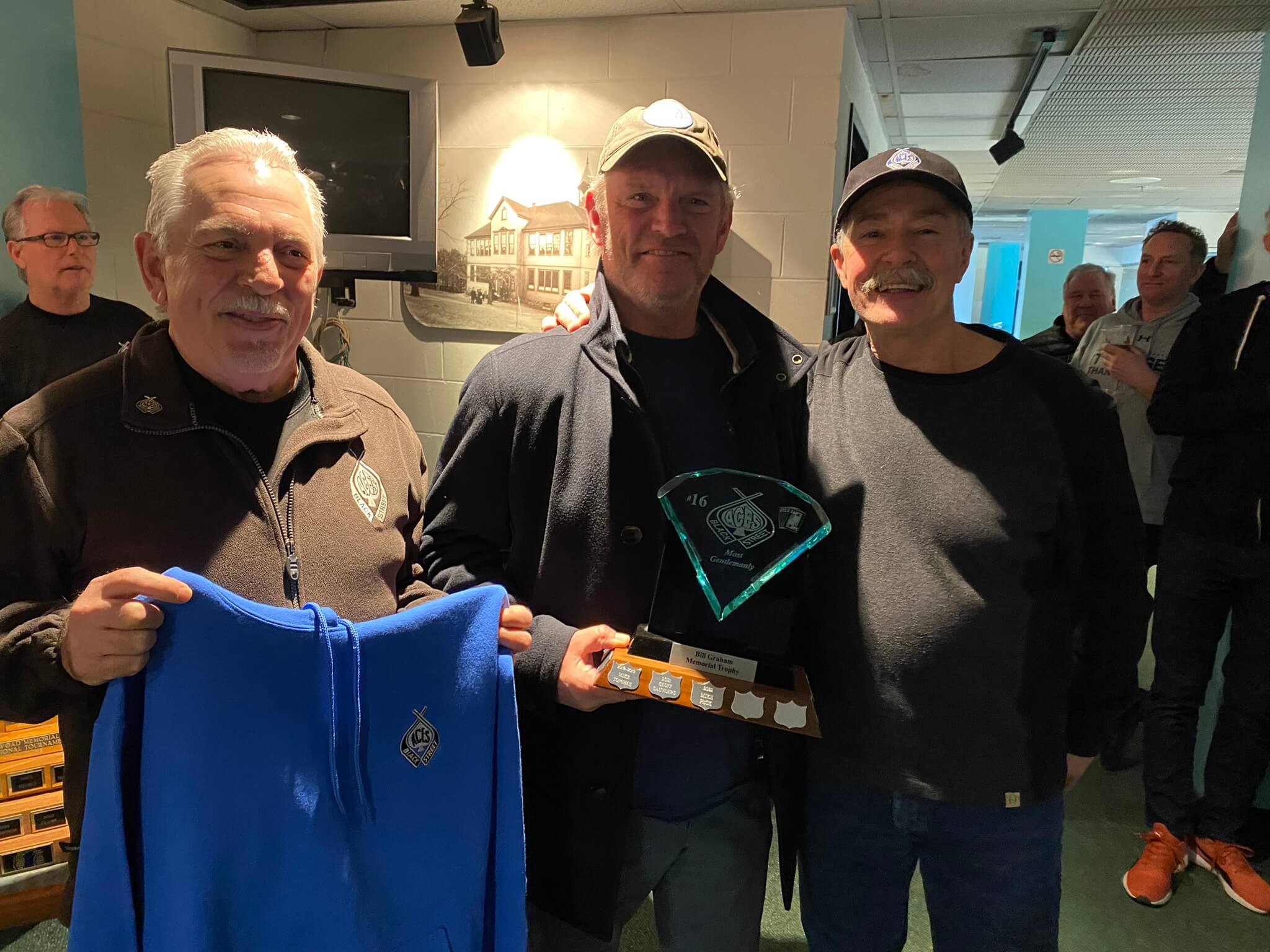 - Four Fallen Aces – These memorial trophies are named after Les Woad, Albert MacLean, John Hutton and Bill Graham who left us far too early in their hockey lives.